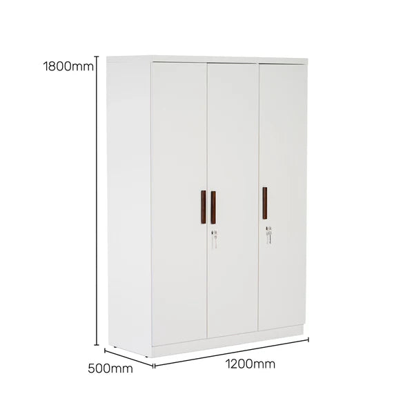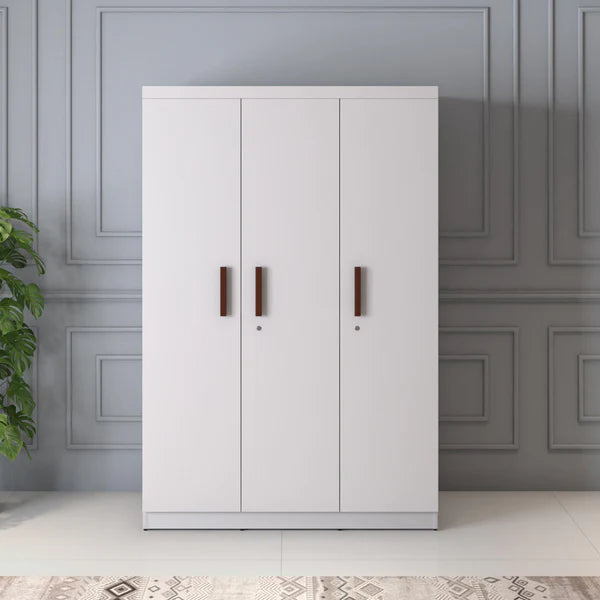 A 3-door wardrobe offers ample storage space, making it ideal for organizing clothes, accessories, and other personal items. It usually includes a combination of hanging rods, shelves, and drawers to provide flexibility in storage.