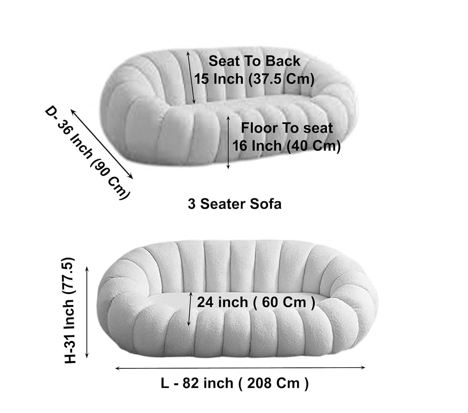 3 Seater Measurement in inches = 82L x 36D x 31H ( Seating Height-16 Inches )