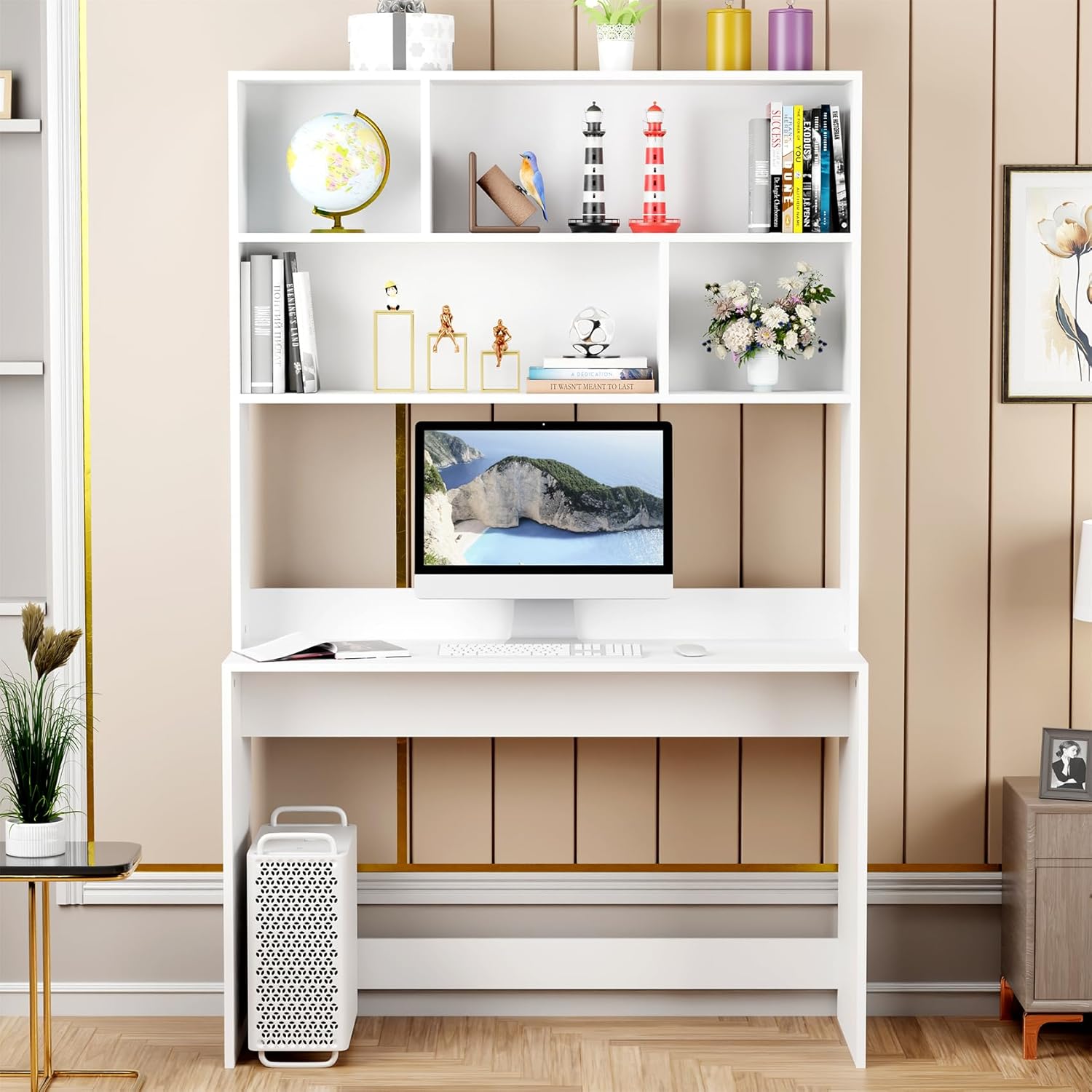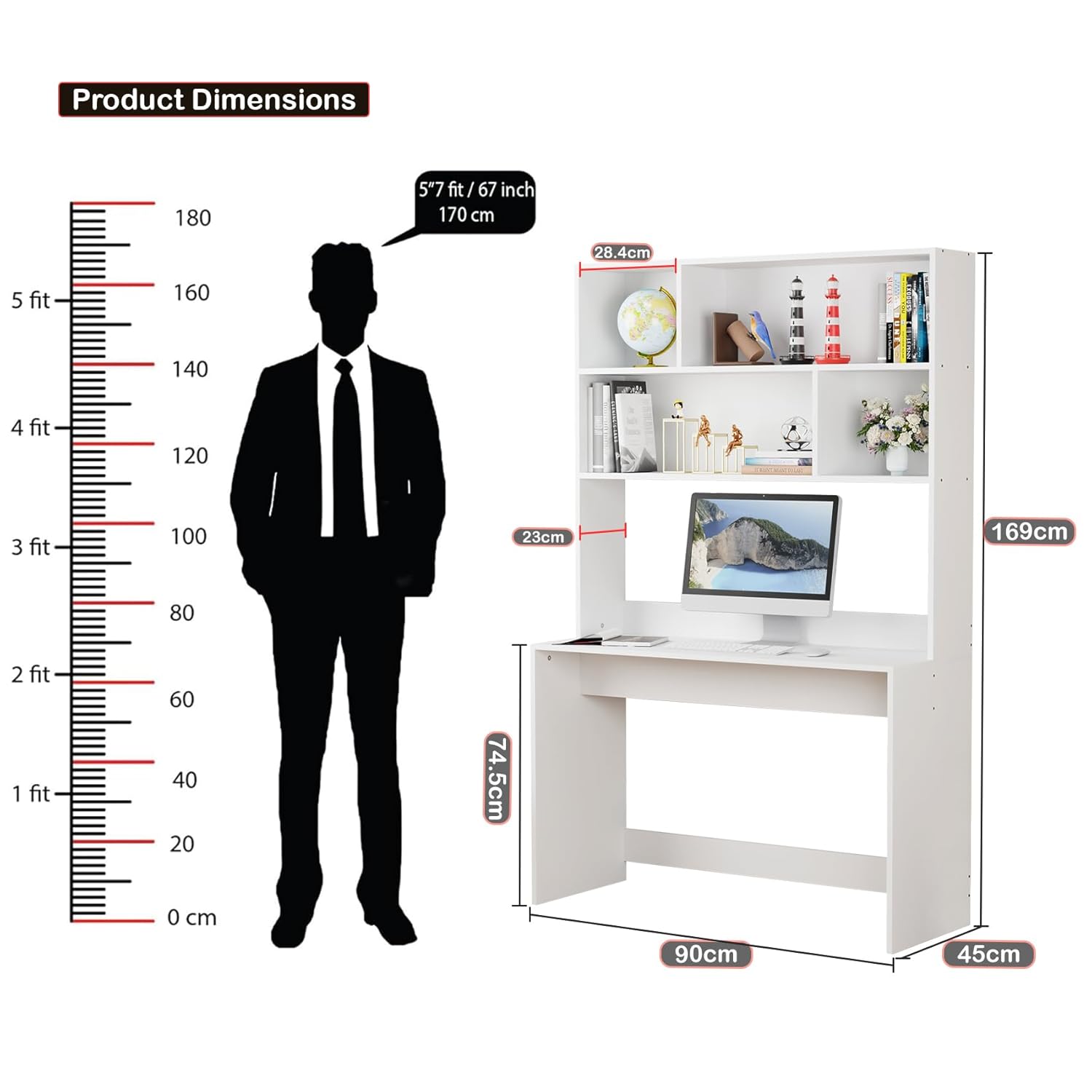 Multi-Purpose Computer Desk with Bookshelf Engineered Wood Study Table (90x45x169 cm)